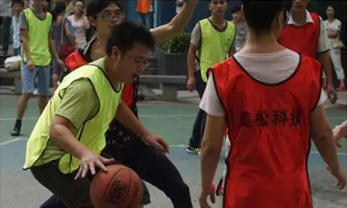 比賽開始前,江總熱情地為我們動員致詞,我們也以熱情點燃了整個籃球場,本著“安全、友誼第一,比賽第二”的原則,在球場上積極投入比賽。首先,進行第一場比賽的是2隊飛虎隊和6隊卓越隊,隨著音樂的響起,比賽正式開始。比賽過程中,隊員們熱情高漲,雙方隊員你爭我奪,引來不少園區人員駐足觀看,公司總經理陳斌先生評價比賽比想象中要好得多。比賽進行一段時間后,天空開始下起了雨,但隊員們和拉拉隊們都沒有為此而暫停比賽,展現了美松科技良好的精神面貌。在下半場的比賽中,比賽規則的修改(女生進一球記為兩球)把比賽推向了高潮,場上歡呼聲、吶喊聲此起彼伏,隊員們矯健的身形,揮灑自如的動作成為了園區一道靚麗的風景線。經過20分鐘的激烈爭奪,最終6隊贏得了第一場比賽。