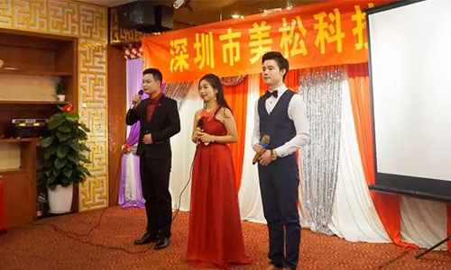 晚會(huì)節(jié)目精彩紛呈,高潮迭起,節(jié)目編排有張有弛,料點(diǎn)十足。在晚會(huì)節(jié)目進(jìn)入尾聲時(shí),2位來自俄羅斯的外國朋友—美松國外合作伙伴,也上臺(tái)給大家?guī)須g樂。他們用俄語為我們熱情高歌。俄語,雖然很多人聽不懂,但是我們美松人用打拍子的方式協(xié)同這位國外朋友獻(xiàn)出自己的熱情。最后用他們的表達(dá)方式祝愿美松走向更美好的未來,同時(shí)也期盼彼此之間有更多的合作。其實(shí),合作是必然的,我們美松科技的產(chǎn)品早已售往全國,遠(yuǎn)銷海外,相信在未來的日子里也會(huì)走得更順暢,為更多的客戶獻(xiàn)上更優(yōu)質(zhì)的產(chǎn)品。