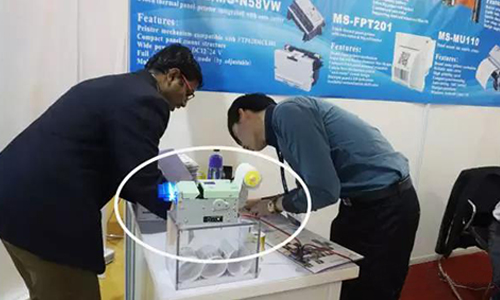 2017年1月19日到21日期間,美松科技走出國門,漂洋過海,遠達印度孟買世界貿易中心參與2017年印度金融展、銀行設備展國際展會,我們的嵌入式打印機在國外展會上華麗亮相。在這樣的國際大舞臺上,我們美松派出了優(yōu)秀的外貿團隊,同時也給廣大的客戶以及參觀人士帶上了公司幾乎所有系列的產品。產品功能齊全,款式精致多樣,其中有一款便是剛剛研發(fā)成功的最新款打印機(MS-EP802-TMP)。這款打印機首次走出國門,首次與客戶見面,它具備打印速度高、打印質量高、切紙厚度大、帶容紙器等功能,還有紙架具有多種安裝方法,方便客戶使用。此款打印機成為了美松科技此次國外展會的一大亮點,熠熠生輝,我們美松也將在2017年把它推向市場。