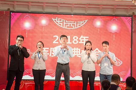 隨著陳董事長的開幕致詞,精彩的節(jié)目正式拉開帷幕!美松各部門都分別準備了精彩的節(jié)目,首先是研發(fā)部門帶來的勁爆舞蹈,在過去的一年中,研發(fā)部門發(fā)揮著企業(yè)發(fā)展創(chuàng)新的關鍵作用,在舞臺上同樣給大家?guī)矶恳恍碌母杏X。資材部門的《公司明天會更好》,他們用朗朗上口的三句半道出企業(yè)歷年來發(fā)展歷程以及公司未來發(fā)展的美好期盼。期間不乏一些平日里的隱藏高手,組裝部的《廣東愛情故事》《成都》,二曲唱完,余音繞梁,不愧為美松歌神。精彩輪番上演,掌聲根本停不下來! 內容百花齊放,笑點不斷,掌聲四起,把年度盛典火熱的氣氛渲染的更加濃烈!