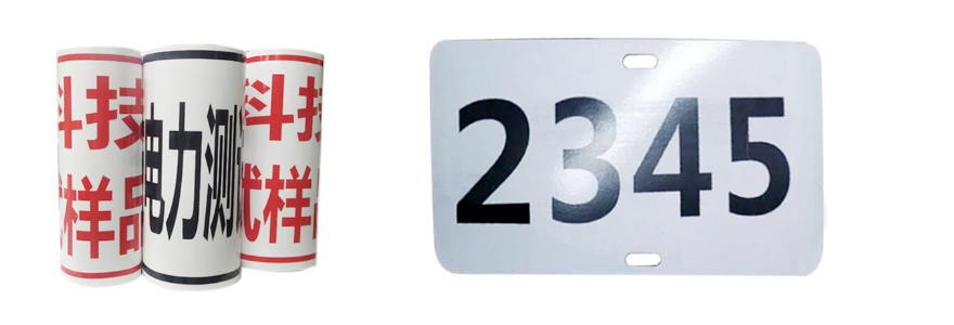 2.熱轉(zhuǎn)印紙:高分子膠帶標(biāo)簽(下圖左),鋁合金材料(下圖右)。