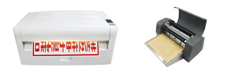 美松熱轉(zhuǎn)印打印機(jī)主要應(yīng)用于標(biāo)識打印機(jī)(下圖左)和卷宗卷皮、檔案袋、檔案盒封面打印機(jī)(下圖右)兩大類,