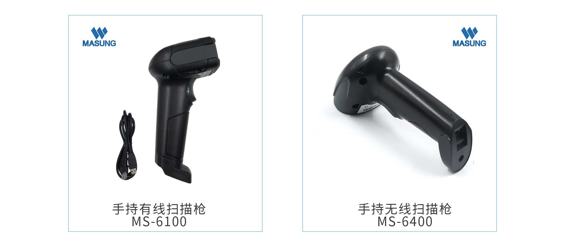 手持式:通常以二維碼掃描槍形式出現??梢話呙鑀DF417、QR碼、GM碼二維碼的條碼掃描槍,如下圖是國內品牌美松MASUNG生產的手持式二維碼掃描槍。