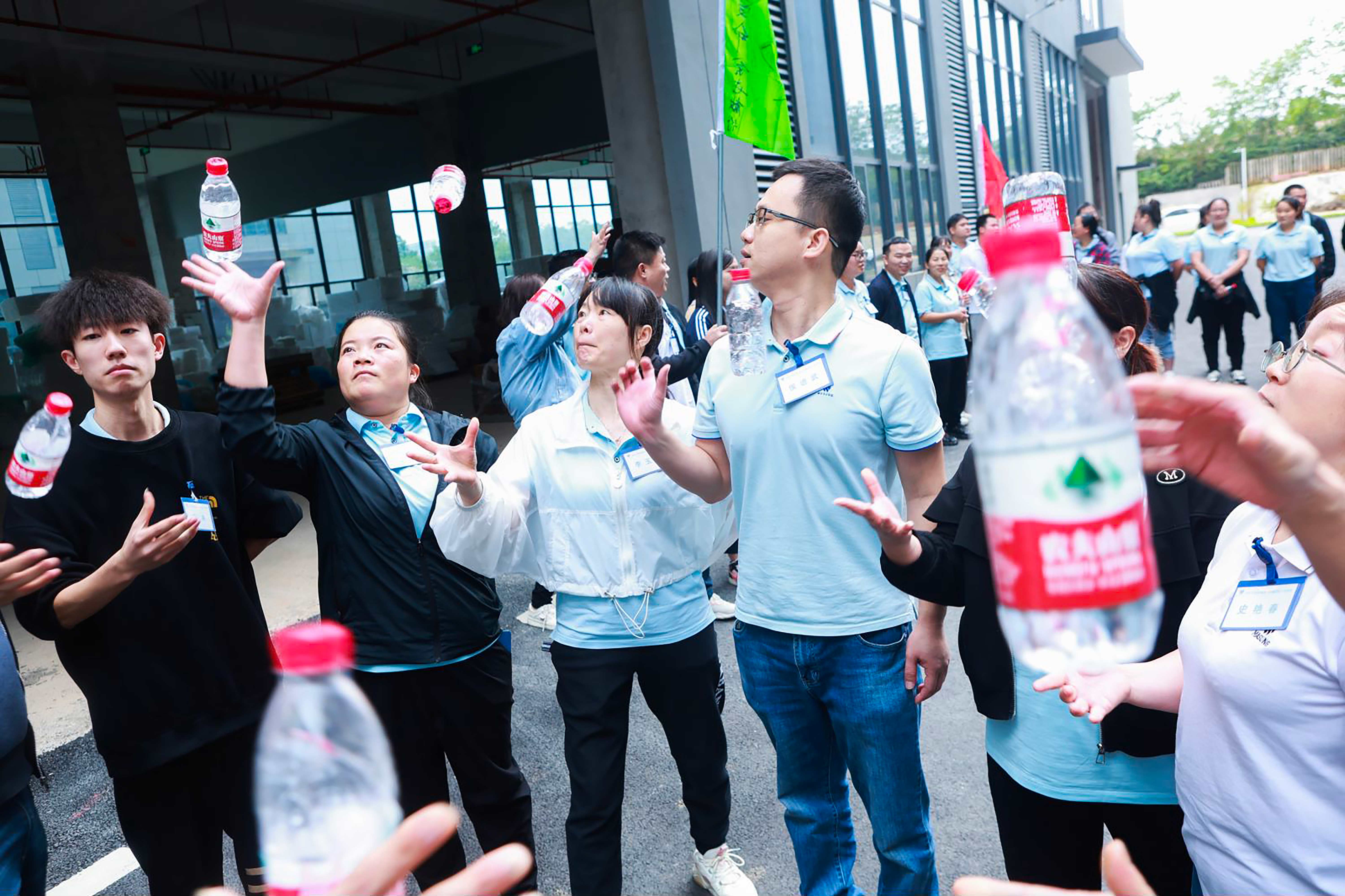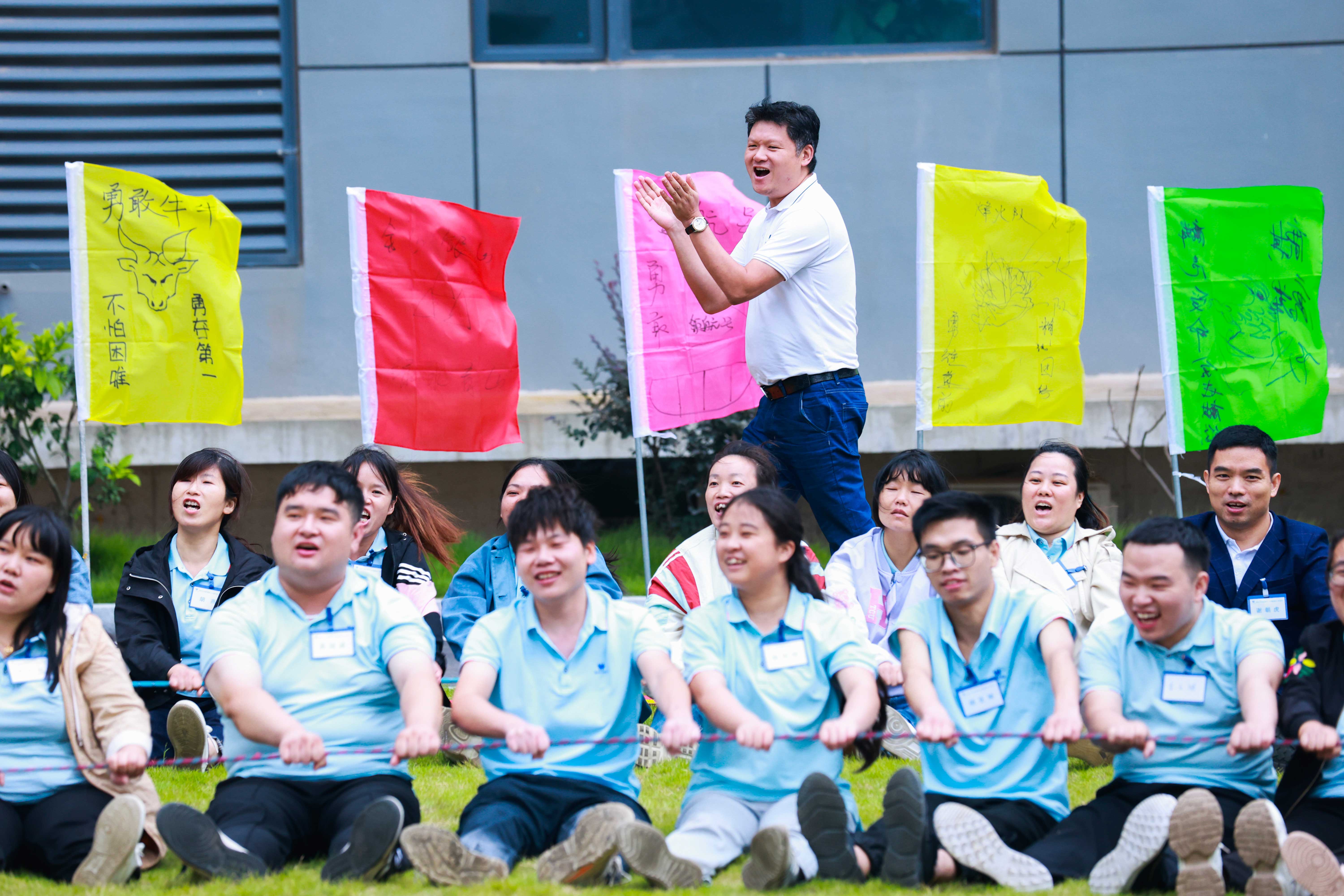 “能量動力圈”項目將活動推向高潮,大家激情澎湃,斗志昂揚,16支隊伍200余人緊緊的聚攏圍圈在一起,緊握首尾相連的繩子并用力拉緊保持圓形,按教練的要求整齊劃一地搖圈若干次,挑戰每個人的極限,從開始不及格的100個到成功挑戰666個的卓越表現,讓我們看到了團隊的震撼與力量。我們都知道螞蟻可以負重三十幾倍的自身重量,而我每個成員就像一只只螞蟻一樣充滿了無限的力量和潛能,當我們每位員工在前方沖鋒陷陣的時候,背后都有一個強大的團隊為他分擔重量。熔煉團隊的過程,不僅提高了我們團隊的凝聚力、向心力、責任感、100%執行力,而且還增加我們所有員工之間的信任感與相互理解包容,團隊與團隊之間的互相協作精神也得到了升華。克服人性弱點,決不放棄直到成功為止,為團隊共同目標的實現而努力奮斗!這過程更是感動的不僅是我們團隊的每一位成員,更有場外的董事長陳斌先生,也親臨現場為我們的所有團隊助陣吶喊鼓掌!