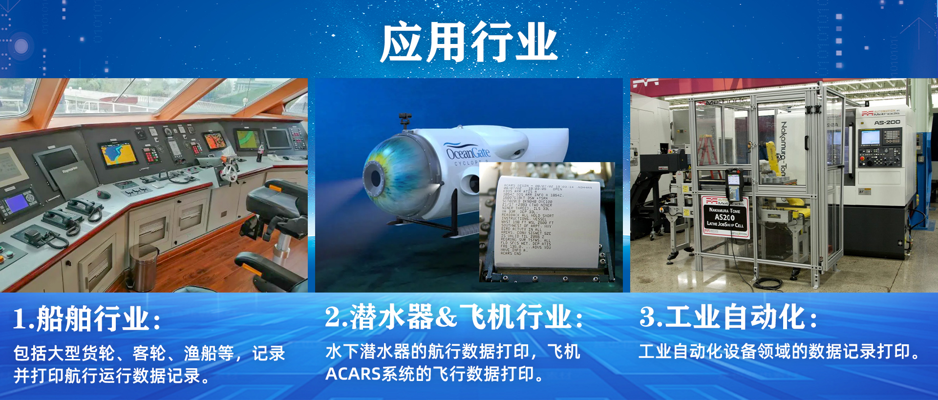 目前美松嵌入式熱敏日志回收打印機&船舶車鐘打印機MS-CM-WSDM,主要是適用于船舶行業的數據記錄的流水打印,應用于大型貨輪、客輪、漁船等船舶。在潛水器&飛機行業有相似類型產品的需求。工業自動化設備領域也一直是我們美松該類型產品進行專業延伸拓展的主要方向之一,可發揮公司產品定制化的特點,獲取工業自動化設備在數據記錄打印機這類型產品的需求。
