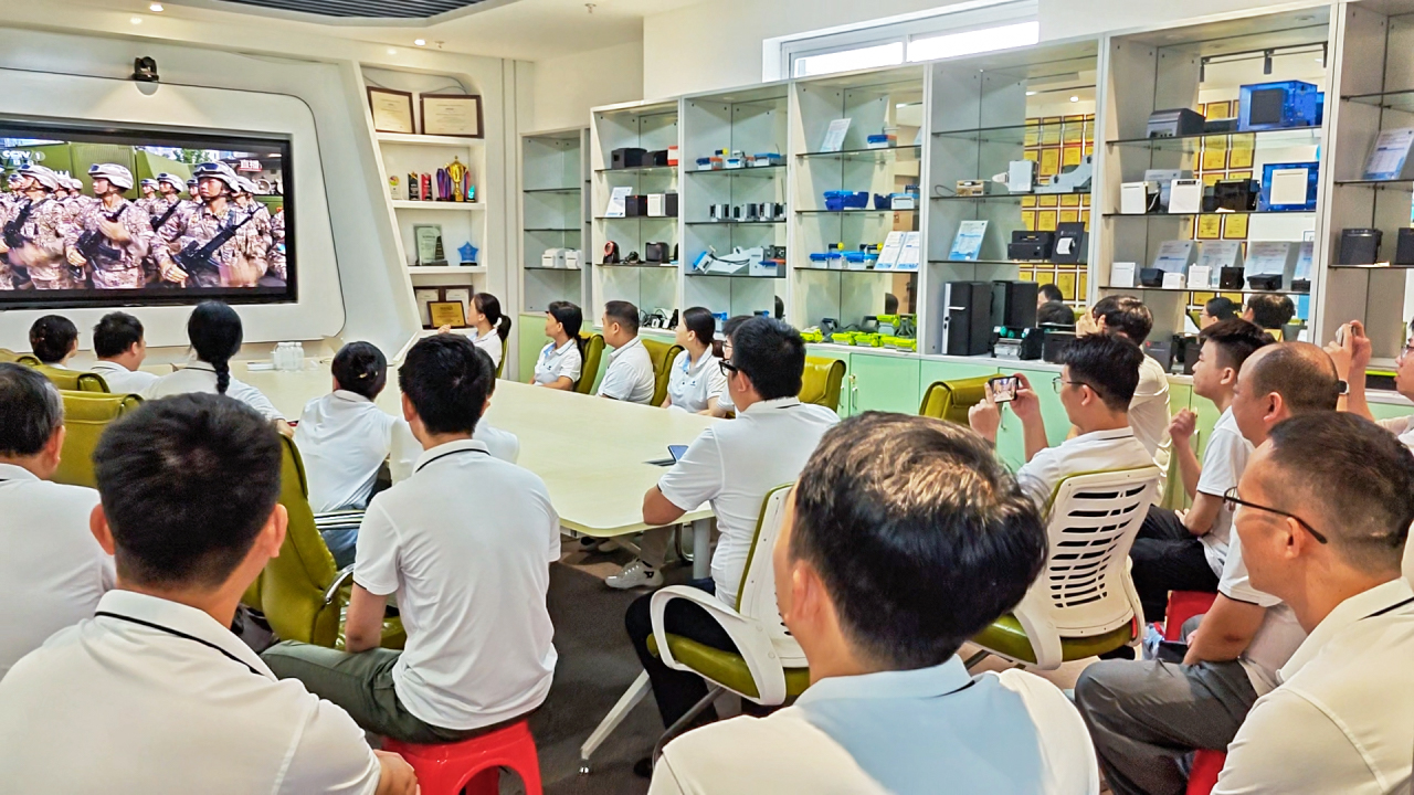 2025年9月3日上午,為讓員工在新時代傳承紅色基因、增強國家認同感,作為打印機領航企業,美松集團深圳公司組織了,來自銷售、研發、市場等部門的員工,在會議室同步觀看《紀念中國人民抗日戰爭暨世界反法西斯戰爭勝利80周年大閱兵》電視直播活動,進一步弘揚愛國主義精神。屏幕上滾動顯示著閱兵現場的氣勢恢宏和受閱部隊的鏗鏘步伐,會議室現場氣氛莊重而熱烈。部分員工還在工位上用手機觀看直播并在留言區踴躍互動,分享對歷史的感悟與對未來國家發展的期待。