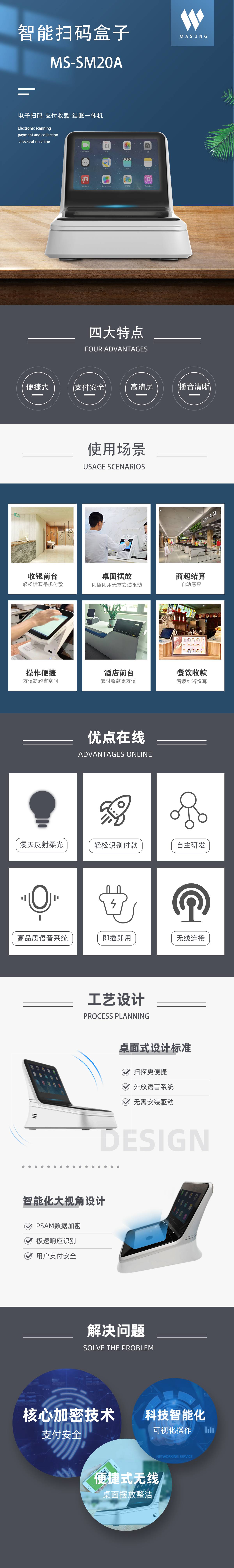美松二維碼支付收款機(jī)MS-SM20A智能盒子采用掃一掃,二維碼,雙聲道立體音喇叭外放,商家只需用戶提供收款碼就可實現(xiàn)快速收款的收款機(jī),二維碼掃描,對商家收款帶來便利,對用戶二維碼支付提供安全,交易實現(xiàn)快速精準(zhǔn)安全模式.電子掃碼,支付收款,結(jié)賬一體的設(shè)備,支持微信,支付寶,公交碼支付,掃碼成功語音播報 ,解放收銀員,更避免漏單,接口:網(wǎng)口,4G和USB,經(jīng)典外觀設(shè)計。