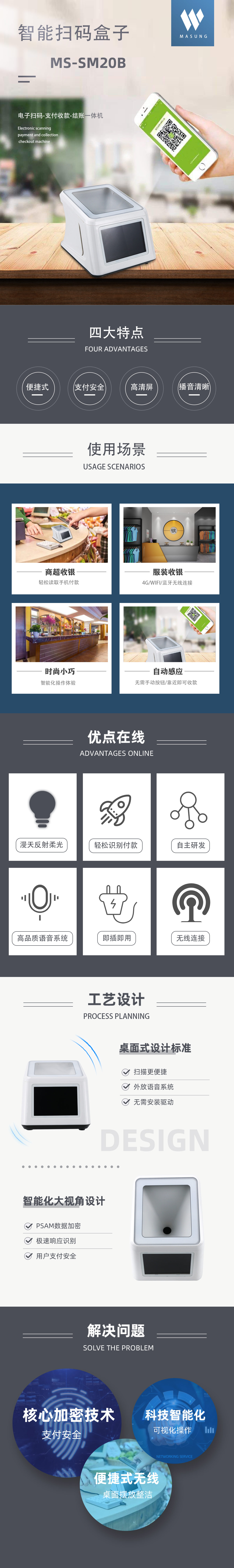 美松二維碼支付收款機 1.電子掃碼,支付收款,結賬一體的新型設備 2.極速響應識別二維碼掃描速度,PSAM數據加密,安全支付 3.采用多元化信息接口,支持多種包括USB,網口,4G接口協議 4.智能掃一掃支付具有雙聲道立體音喇叭