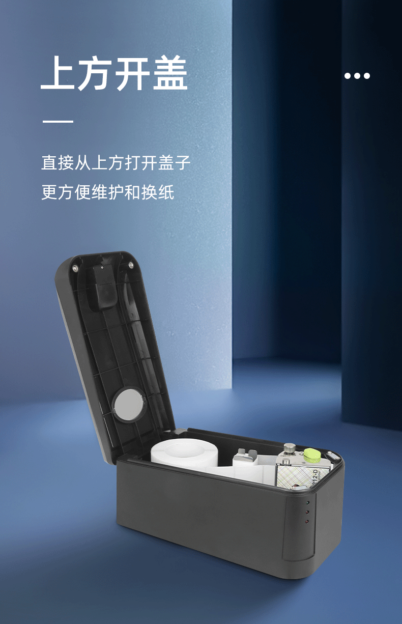 美松標簽打印一體機,45度角斜出紙,連接電源 USB,打開開關,指示燈亮表示打印機正常,打開機蓋,裝入標簽紙,設置好回收底紙裝置,裝紙完成,打印測試,價格條碼等標簽都可使用,美松桌面式標簽打印一體機,美松憑借多年對標簽打印的研究,以及大量標簽打印案例的積累,為零售新零售等行業逐漸形成了以自動化為理念的一系列解決方案。