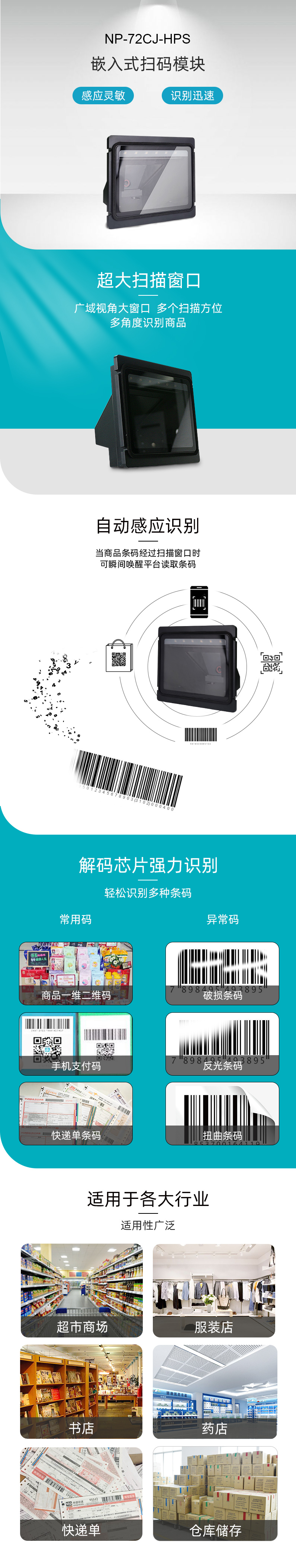 領(lǐng)先解碼技術(shù) 采用自主研發(fā)的核心技術(shù),極速響應(yīng),支持快速開發(fā)和定制需求 高運動容差 采用全局曝光鏡頭搭配快速抓取技術(shù),可實現(xiàn)在運動過程中快速讀取 褶皺殘缺電子秤條碼優(yōu)化 對電子秤打印碼、褶皺和殘缺碼進(jìn)行算法優(yōu)化,可識讀率更高 可擴展喇叭 自帶蜂鳴器的同時,預(yù)留喇叭外部接口,可擴展
