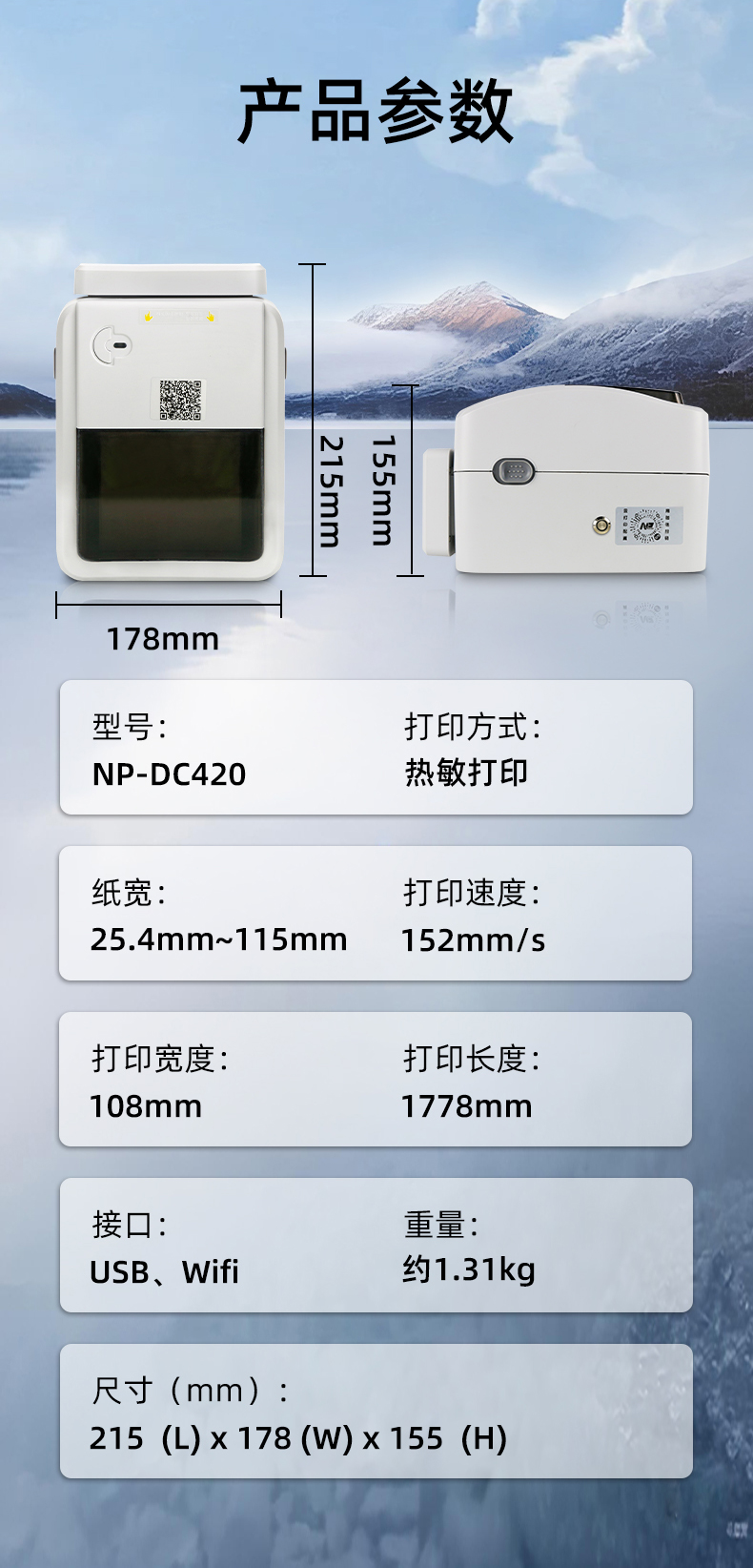 美印電子NP-DC420標簽打印機是一款帶有切刀4寸條碼打印機,打印寬度108mm.使用長效熱敏紙打印,打印內容保存時間較長,解決普通熱敏紙易消失的痛點;成本低,無碳帶噴墨等耗材;桌面式設計,輕松打印;簡約時尚,性能穩定,寬幅打印;大批量印制票據需求的熱敏條碼打印機,應用于物流,倉儲,珠寶,服裝,醫療,商超等行業,可打印標準的發票,是一款帶切刀的票據,發票打印機。