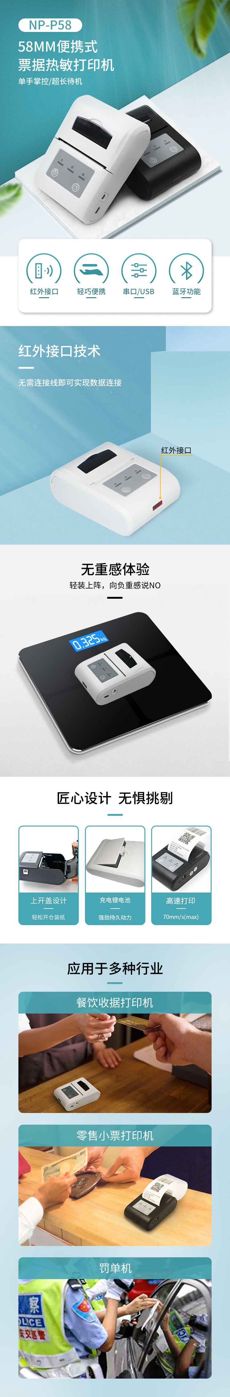 1.支持多種一維條形碼&二維碼功能的打印 2.支持GB18030漢字庫,可高速打印漢字,位圖打印 3.特殊支持紅外紅外(雅培紅外協議)接口 4.單手掌控,便攜性極好