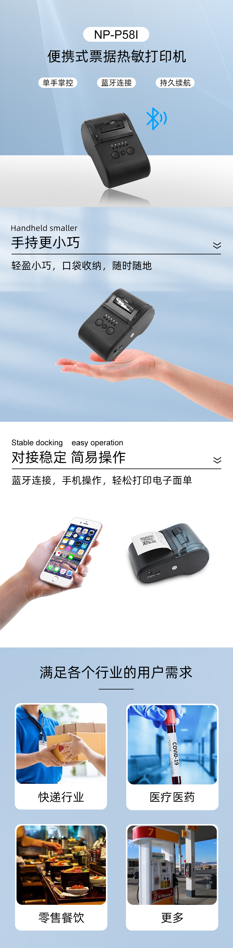 1.支持多種一維條形碼&二維碼功能的打印 2.支持GB18030漢字庫(kù),可高速打印漢字 3.接口類型:藍(lán)牙,mircoUSB