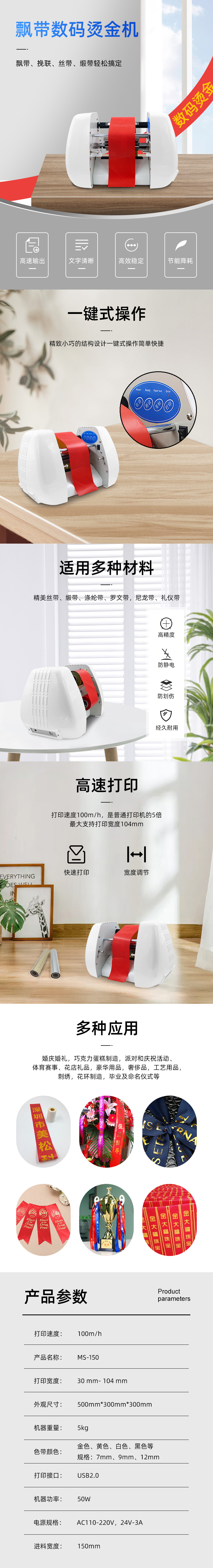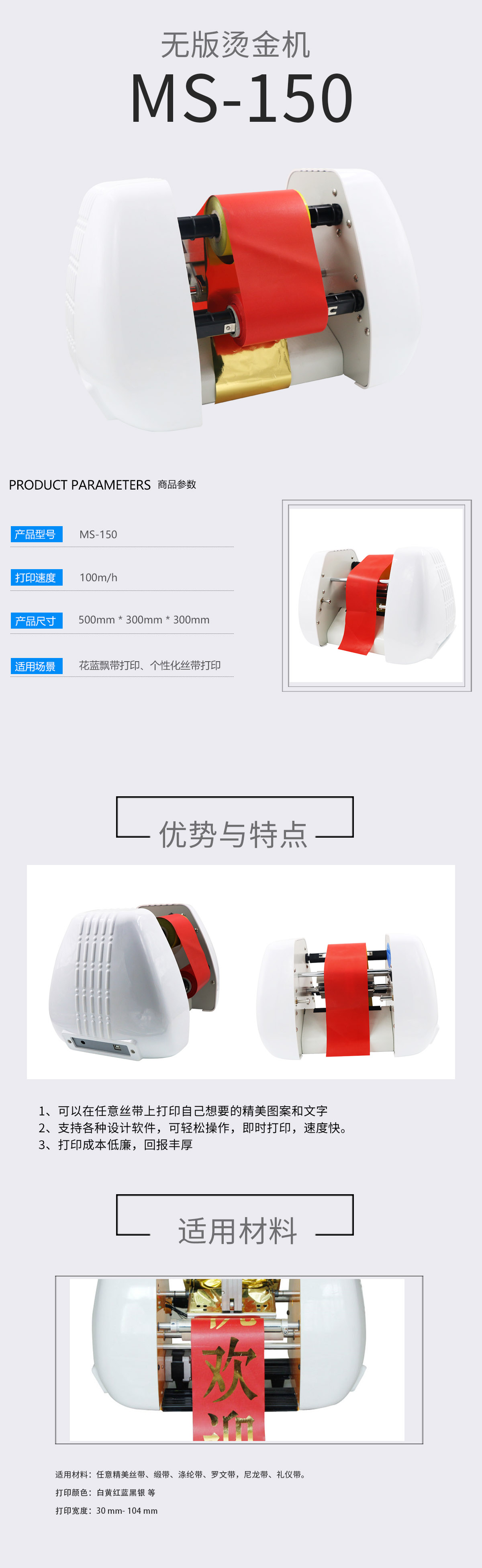 美松全自動絲印機 1.體積?。ㄗ烂鏀[設) 2.速度快(是普通打印機的5倍) 3.打印成本超低,每條僅需3毛線 4.任意在絲帶上打印精美的圖案,文字,標志 5.超寬的打印幅度,可滿足不同客戶的需求 6.采用進口高精度,防靜電,防劃傷打印頭,經久耐用 7.邊排版邊打印,現打現用,方便快捷 8.支持各種軟件設計,可輕松操作即時打印