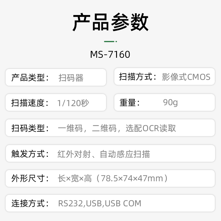 美松嵌入式掃描模塊 1.全面讀取所有主流一維 ,二維碼,多國語言信息條碼直傳 2.物體自感應,2M/S運動容差 3.內置RS232 和USB接口,通過掃碼即可切換 4.3.3-5V寬電壓輸入,無懼電壓波動 5.大掃描窗口+超薄烤漆時尚設計 6.極速讀取手紙質和電子屏碼