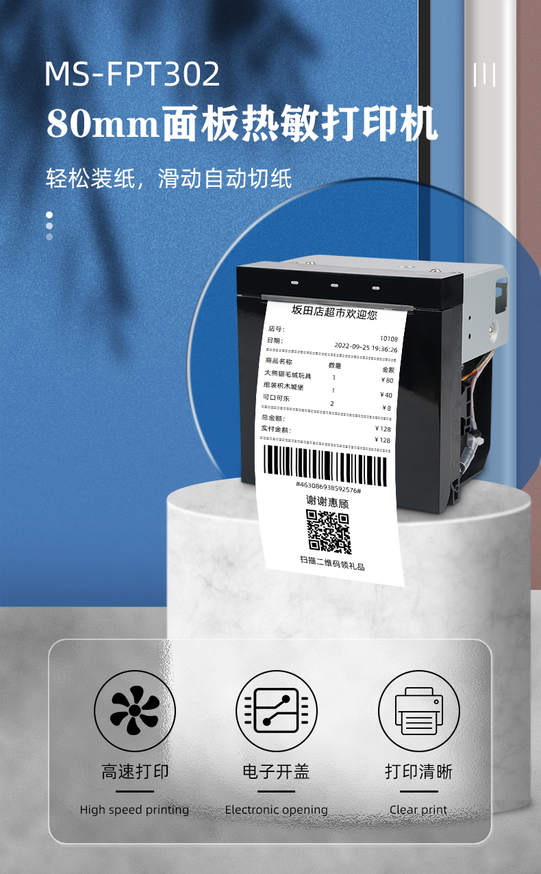 MS-FPT302是一款面板嵌入式自助打印機(jī),專業(yè)的熱敏票據(jù)打印機(jī),用于醫(yī)療、零售、政務(wù)等行業(yè)的自助終端設(shè)備。水平面蓋嵌入,高端大氣,無(wú)人值守打印機(jī)適配無(wú)人無(wú)接觸式服務(wù)設(shè)備。