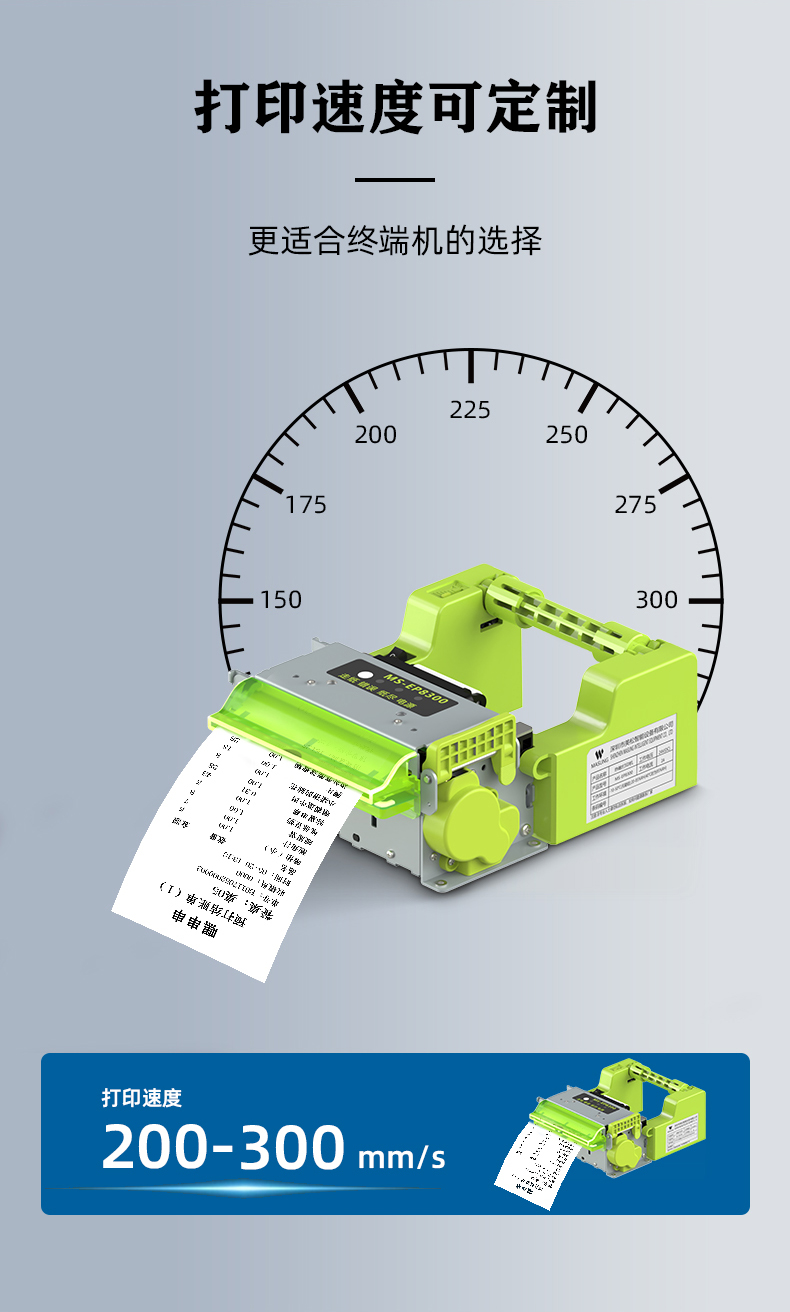以“清新綠”作為主色新一輪創新的美松特色產品上市,在顏色上凸顯清新脫俗的生命力和綠色環保低碳的生活理念,讓人耳目一新; 在高效率打印技術上也突破了以往的打印速度,高配版本達到300mm/s, 可打印80mm的熱敏紙卷,具有100mm的紙卷寬度 打印頭側翻蓋設計,維護簡單; 增加防堵紙檢測傳感器等功能,打印工作將故障排除在千里之外; 搭配100毫米直徑的紙卷,減少換紙頻率; 優化外觀設計,選擇優質圓潤的塑膠外殼,操作使用更加安全可靠;