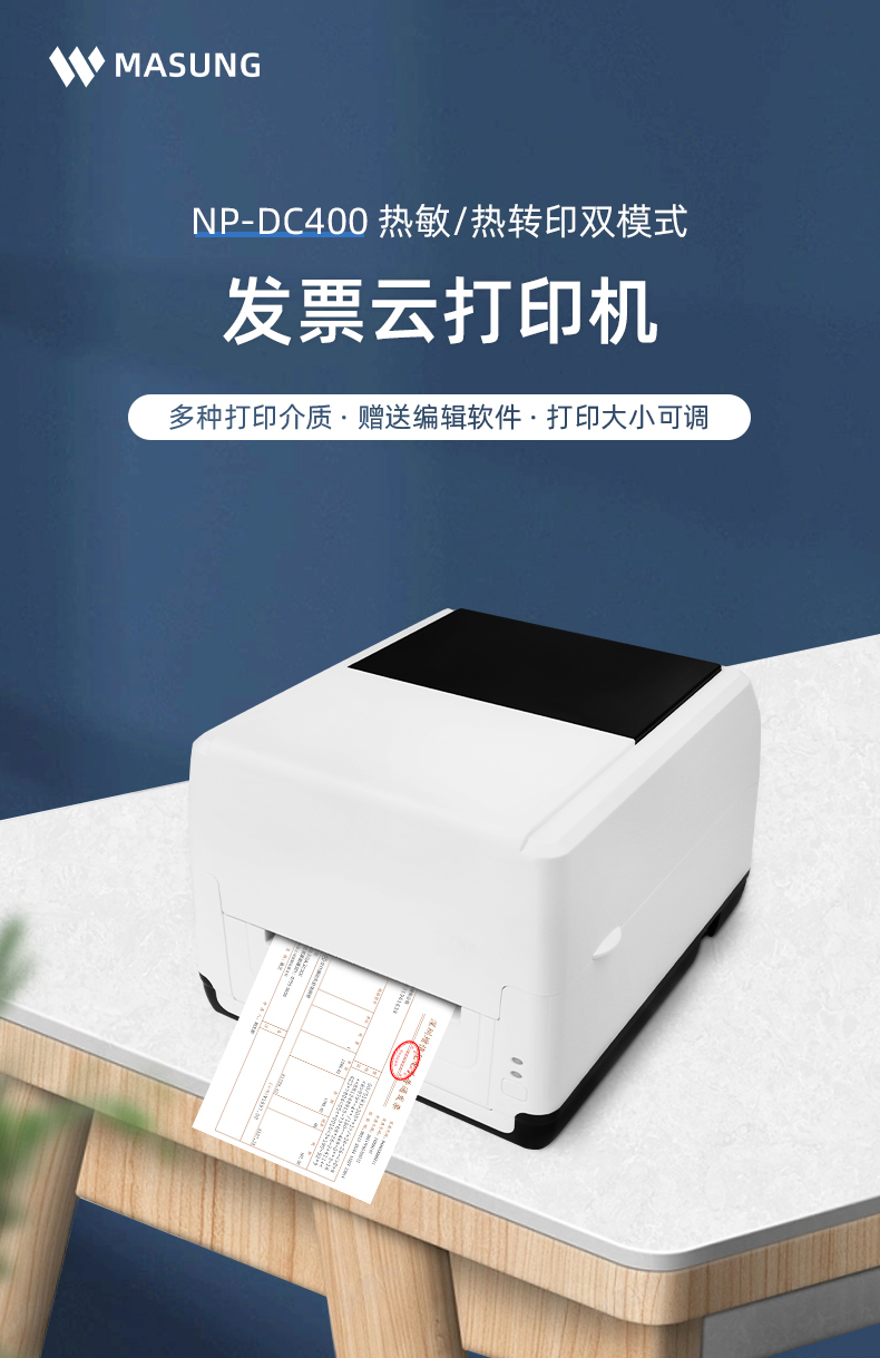 NP-DC400_熱敏/熱轉印發票打印機,是一款多功能的桌面式發票打印機.,可打印電子發票,具有專門的打印軟件,適配Windows系統,和手機進行打印 根據打印紙卷和碳帶的不同,可以分別用來打印熱敏發票和熱轉印發票,實現一機多用, 多介質偵測,可手動進行調節,可適配市面上大部分的打印寬度,標準的發票進行打印 根據碳帶的顏色不同可以打印多種顏色的標簽,還可以打印熱敏不干膠標簽和熱轉印標簽 操作簡單方便快捷,更易上手