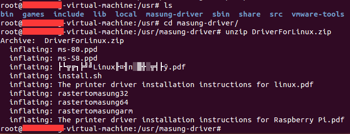進入 masung-driver 目錄,然后使用 unzip 命令解壓驅動程序。