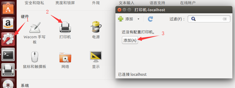 1打開系統(tǒng)設置,2點擊打印機,3點擊添加。