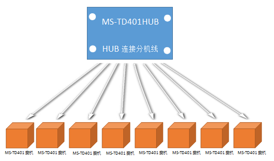 1. MS-TD401HUB電路板共設有八個連接器可連接MS-TD401整機中的電源及串行接口數據。