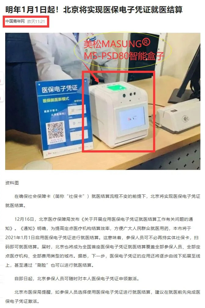 據中國青年網報道,2021年1月1日起,北京將實現醫保電子憑證就醫結算,美松MS-PSD80集打印掃描結算