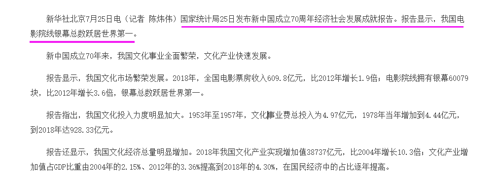 文化是民族的命脈,影劇院是社會主義文化建設的重要陣地。根據報告顯示,我國影劇院線銀幕總數躍居世界第一。